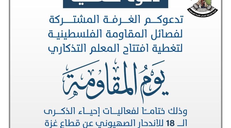 Read Moreوضعت الغرفة المشتركة لفصائل المقاومة الفلسطينية اللمسات الأخيرة على معلماً تذكارياً يخلد ذكرى اندحار الاحتلال عن قطاع غزة، حيثُ سيتم