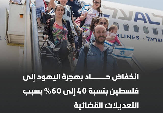 Read Moreصحيفة يديعوت أحرونوت: انخفاض حاد بمعدل بالهجرة اليهودية إلى فلسطين بنسبة تتراوح بين 40-60% خلال الأشهر الفائتة بسبب أزمة التعديلات