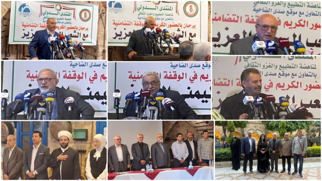 نظّم المنتدى الدولي لمناهضة التطبيع والغزو الثقافي، بالتعاون مع موقع “صدى الضاحية”، وقفة تضامنية حاشدة في مطعم “الساحة” بالعاصمة اللبنانية بيروت، تحت عنوان: